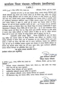 छत्तीसगढ़ शासन पंचायत एवं ग्रामीण विकास विभाग के त्रि स्तरीय पंचायत के उच्च स्तर पर क्रियान्वयन करने वाले एजेंसी कार्यालय जिला पंचायत गरियाबंद द्वारा अभी अभी जारी आदेश ने पढ़ने और सुनने वालों को आश्चर्य चकित कर रहा है लोगों के जेहन में एक बात समझ में नहीं आ रहा है कि पंचायती राज व्यवस्था में ऐसा भी आदेश संभव है जी हां यह मामला है कार्यलय जिला पंचायत गरियाबंद जहां जनपद पंचायत के मुख्य कार्यपालन अधिकारी को ग्राम पंचायत के पंचायत सचिव का वित्तीय प्रभार दिया गया है ज्ञात हो कि मामला यहां का इस प्रकार है कि ग्राम पंचायत कोपरा जनपद पंचायत गरियाबंद के उपसरपंच एवं 12 पंचों द्वारा ग्राम पंचायत कोपरा के सरपंच योगेश्वरी साहू एवं सचिव किशन साहू के ऊपर ग्राम पंचायत में भ्रष्टाचार एवं अनियमितता का आरोप लगाया जिला पंचायत द्वारा किए गए शिकायत का जांच विभागीय अधिकारियों द्वारा कराया गया जांच पश्चात आरोप सही पाए जाने के फल स्वरुप ग्राम पंचायत कोपरा के तत्कालीन सरपंच योगेश्वरी साहू को पंचायती राज अधिनियम 1993 की धारा 40 के तहत पद से बर्खास्त की कार्यवाही करते हुए पंचायत सचिव किशन साहू को पंचायत राज अधिनियम में निहित प्रावधान अनुसार 1993 की धारा 46 में उल्लिखित प्रावधान के आधार पर विभागीय जांच संस्तित कर जनपद पंचायत फिंगेश्वर में संलग्न कर दिया गया और जनपद पंचायत गरियाबंद में पदस्थ मुख्य कार्यपालन अधिकारी अजय कुमार पटेल को ग्राम पंचायत के सचिव का वित्तीय अधिकार एवं समस्त दायित्व एवं कर्तव्यों का निर्वहन के लिए आदेशित कर दिया गया यहां बताना लाजिमी होगा कि बकायदा कार्यालय जिला पंचायत गरियाबंद द्वारा जारी आदेश क्रमांक 307 / 17.4.23के अनुसार उक्त जारी आदेश की प्रतिलिपि संचालक पंचायत संचनालय विकास भवन नार्थ ब्लॉक नया रायपुर के साथ-साथ माननीय कलेक्टर जिला गरियाबंद अनुभागीय अधिकारी राजस्व गरियाबंद मुख्य कार्यपालन अधिकारी फिंगेश्वर और गरियाबंद को भी प्रतिलिपि दिया गया है उपरोक्त जारी कार्यालय जिला पंचायत गरियाबंद द्वारा आदेश के परिपालन में
