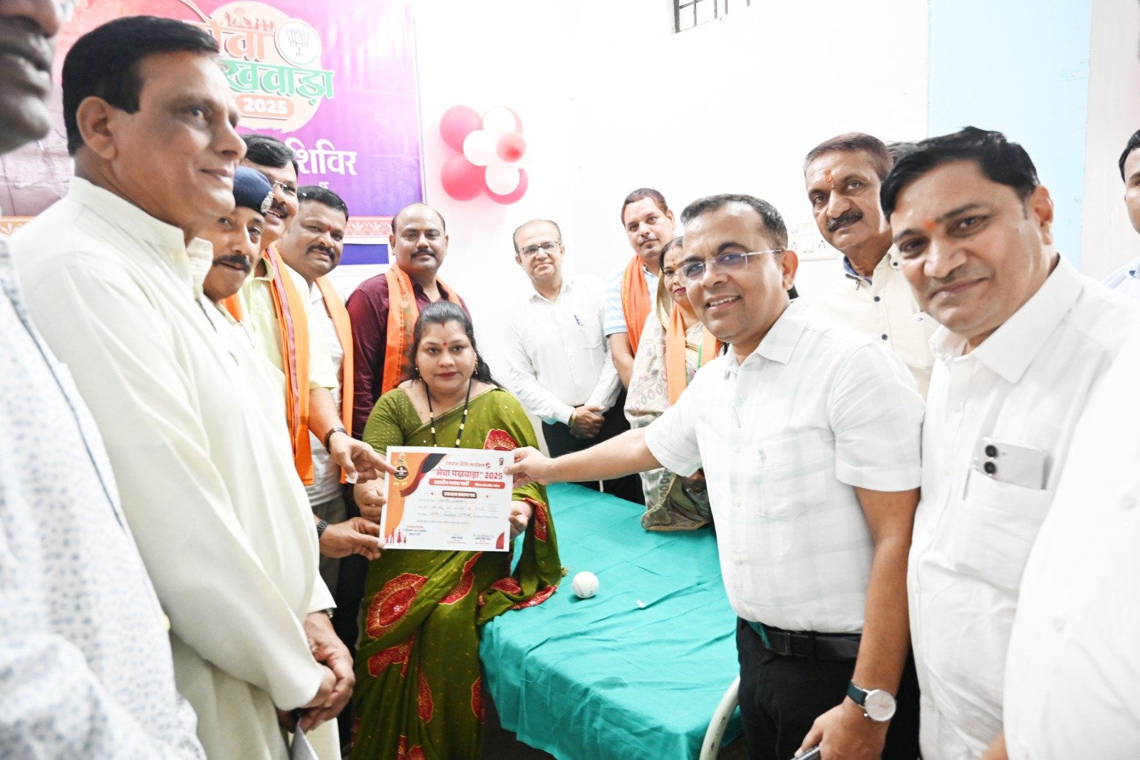 जांजगीर-चांपा 17 सितम्बर 2025। छत्तीसगढ़ रजत जयंती महोत्सव तथा स्वस्थ नारी सशक्त परिवार अभियान के तहत आज जिला अस्पताल जांजगीर में स्वैच्छिक रक्तदान शिविर का आयोजन किया गया। इस अवसर पर कलेक्टर श्री जन्मेजय महोबे पुलिस अधीक्षक श्री विजय कुमार पांडेय सहित जनप्रतिनिधि एवं सामाजिक संगठन के प्रतिनिधि उपस्थित रहे। इस दौरान कलेक्टर ने जिला पंचायत अध्यक्ष श्रीमती सत्यालता आनंद मिरी को रक्तदान करने पर प्रमाण पत्र प्रदान कर सम्मानित किया।