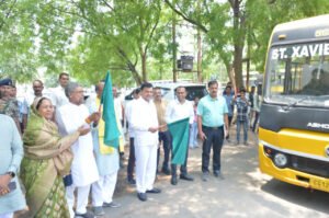 विद्यार्थियों की बस को हरी झंडी दिखाकर किया रवाना