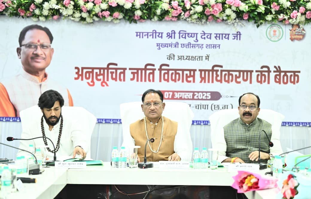 जांजगीर-चांपा :- मुख्यमंत्री श्री विष्णु देव साय की अध्यक्षता में आज जांजगीर-चांपा जिले के जिला पंचायत सभाकक्ष में आयोजित अनुसूचित जाति विकास प्राधिकरण की बैठक में प्राधिकरण के बजट को 50 करोड़ से बढ़ाकर 75 करोड़ रुपये करने की स्वीकृति दी गई। मुख्यमंत्री श्री साय ने निर्देश दिए कि प्राधिकरण मद से स्वीकृत कार्यों को सभी कलेक्टर्स गंभीरता से लें और उन्हें उच्च गुणवत्ता के साथ निर्धारित समयसीमा में पूर्ण कराना सुनिश्चित करें। उन्होंने कहा कि अब प्राधिकरण की बैठक हर वर्ष समय पर आयोजित होगी और कार्यों की गहन समीक्षा की जाएगी।