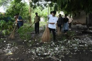 जांजगीर चांपा :- कलेक्टर श्री आकाश छिकारा, नगर पालिका अध्यक्ष श्री जय थवाईत,वन मंडलाधिकारी श्रीमती प्रियंका पांडेय, सहायक कलेक्टर दुर्गा प्रसाद अधिकारी सहित जनप्रतिनिधियों,अधिकारी कर्मचारियों ने शनिवार को चांपा के स्व. राजकिरण दुग्गड़ उद्यान सहित आसपास के क्षेत्र में स्वच्छता अभियान चलाया गया और श्रमदान करते हुए लोगों को स्वच्छता के प्रति प्रेरित किया। इस दौरान स्व. राजकिरण दुग्गड़ जी की प्रतिमा पर माल्यार्पण भी किया गया। वही स्कूली बच्चों का मनोबल बढ़ाते हुए कलेक्टर श्री छिकारा ने वॉल पेंटिंग भी की