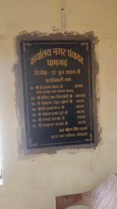 पामगढ़ में जब नगर पंचायत का गठन हुआ प्रथम मनोनीत नगर पंचायत अध्यक्ष तेरस राम यादव थे और नगर पंचायत सीएमओ दीपक शर्मा बनाया गया था इनका कार्यकाल जून 2024 तक था प्रशासनिक फेर बदल के बाद सितंबर माह में ब्रज मोहन सिंह परस्ते को पामगढ़ नगर पंचायत सीएमओ की जिम्मेदारी मिली, लेकिन नगर पंचायत के अंदर लगे सिला लेख पर पूर्व नगर पंचायत सीएमओ दीपक शर्मा का नाम अंकित है जिसको वर्तमान सीएमओ के द्वारा उनके नाम के ऊपर स्टीकर चिपकाकर अपना नाम अंकित करना यह कृत्य घोर लापरवाही को दर्शाता है।