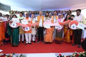 रायपुर, 30 मार्च 2025। आज हिंदू नववर्ष के अवसर पर प्रधानमंत्री श्री नरेंद्र मोदी की उपस्थिति में छत्तीसगढ़ में 3 लाख हितग्राहियों को नव निर्मित आवासों में गृह प्रवेश कराया गया। इस अवसर पर रायपुर जिले में प्रधानमंत्री आवास योजना ग्रामीण के 11 हजार 946 लाभार्थियों को उनके आवासों की चाबियां सौंपी गईं।