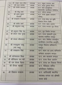 रायपुर :- प्रदेश सरकार ने केंद्रीय गृहमंत्री के प्रवास के पहले निगम मंडलों की बहुप्रतीक्षित सूची जारी कर दी है। सरकार की तरफ से 36 मंडल-निगम के अध्यक्ष-उपाध्यक्षों के नाम तय किये गए है।