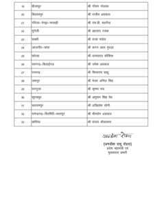 रायपुर :- भाजपा प्रदेश अध्यक्ष किरण सिंह देव ने जिला पंचायत अध्यक्ष के चयन के लिए सभी 33 जिलों में पर्यवेक्षकों की नियुक्ति की है। रायपुर में शिवरतन शर्मा, दुर्ग में गौरीशंकर अग्रवाल, धमतरी में मोतीलाल साहू, कवर्धा में नारायण चंदेल को जिम्मेदारी दी गई है।