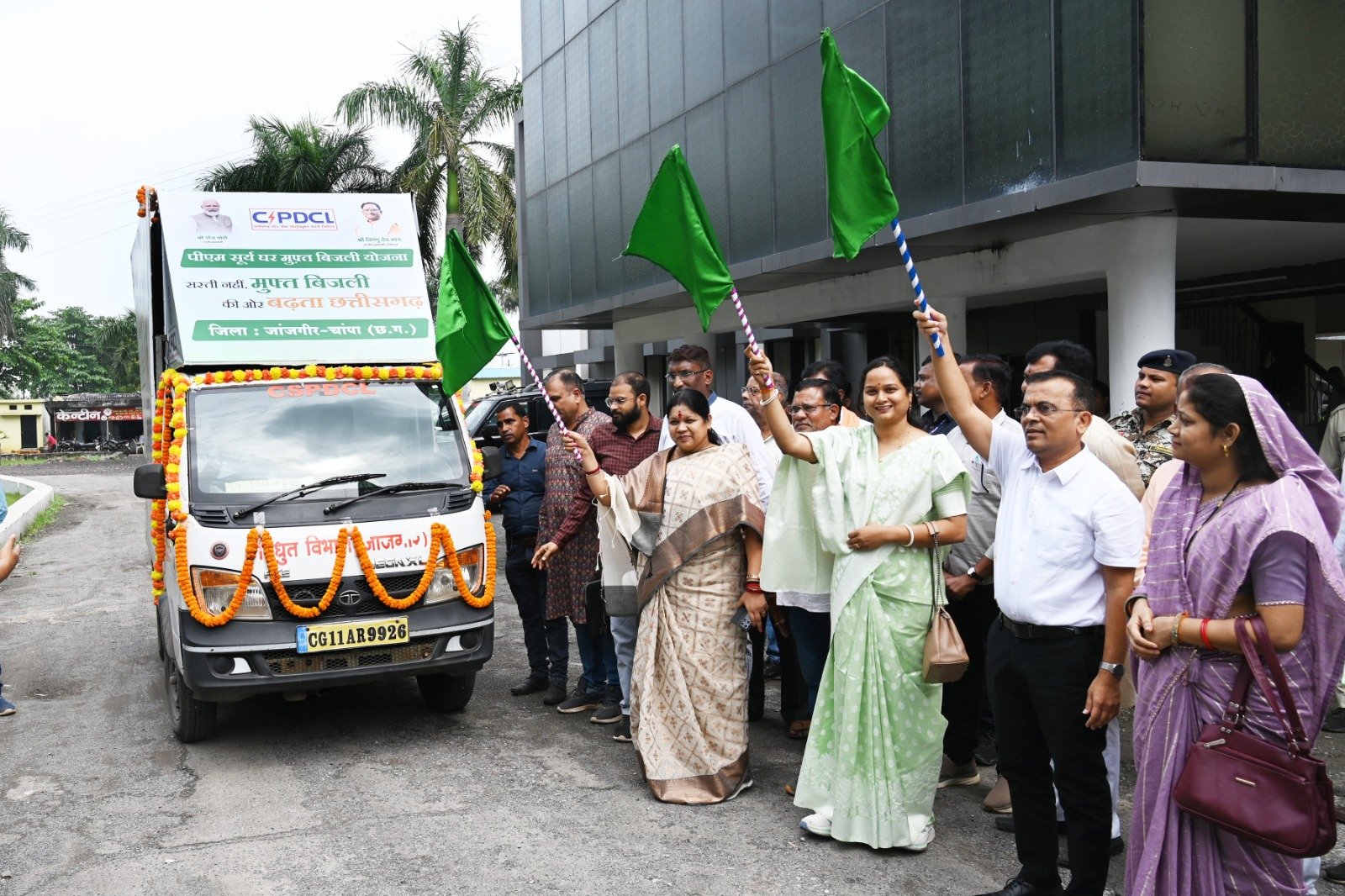 सांसद श्रीमती कमलेश जांगडे़ ने प्रधानमंत्री सूर्य घर मुफ्त बिजली योजना प्रचार रथ को हरी झंडी दिखाकर किया रवाना