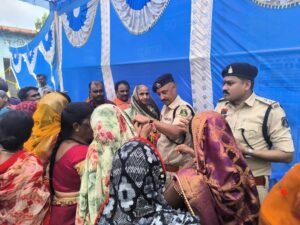 पुलिस अधीक्षक द्वारा उपस्थित गांव के लोगों एवं बच्चों को मिठाई बांटकर रक्षा बंधन की शुभकामनाएं भी दी गई