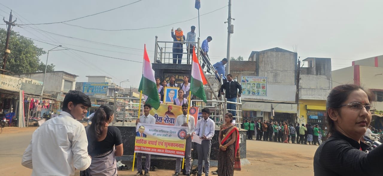 पामगढ़, 26 नवंबर 25। राष्ट्रीय सेवा योजना इकाई विद्या निकेतन उ. माध्यमिक विद्यालय पामगढ़ एवं ड्रीमलैंड पब्लिक स्कूल पामगढ़ के संयुक्त तत्वाधान में 26 नवंबर 2025 को “संविधान दिवस” के अवसर पर एक भव्य रैली का आयोजन किया गया। रैली का शुभारंभ विद्यालय परिसर से होकर तहसील चौक होते हुए अंबेडकर चौक तक किया गया, जिसमें विद्यार्थियों ने डॉक्टर भीमराव अंबेडकर जी को स्मरण करते हुए समाज में भारतीय संविधान के महत्व का संदेश दिया।
