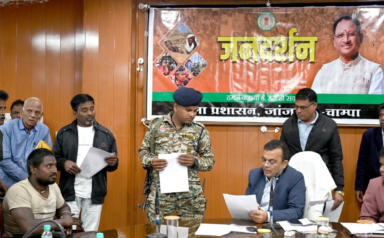 जांजगीर-चांपा 08 दिसम्बर 2025/ कलेक्टर श्री जन्मेजय महोबे ने आज कलेक्टोरेट सभाकक्ष में जनदर्शन कार्यक्रम के माध्यम से जिले के विभिन्न क्षेत्रों से पहुंचे जनसामान्य की शिकायतों एवं मांग जैसे समस्याओं को संवदेनशीलतापूर्वक सुना और उन्होंने संबंधित अधिकारियों को समस्याओं को प्राथमिकता के साथ और समय-सीमा में निराकरण के निर्देश दिए। आज जनदर्शन में कुल 78 आवेदन प्राप्त हुए हैं।
