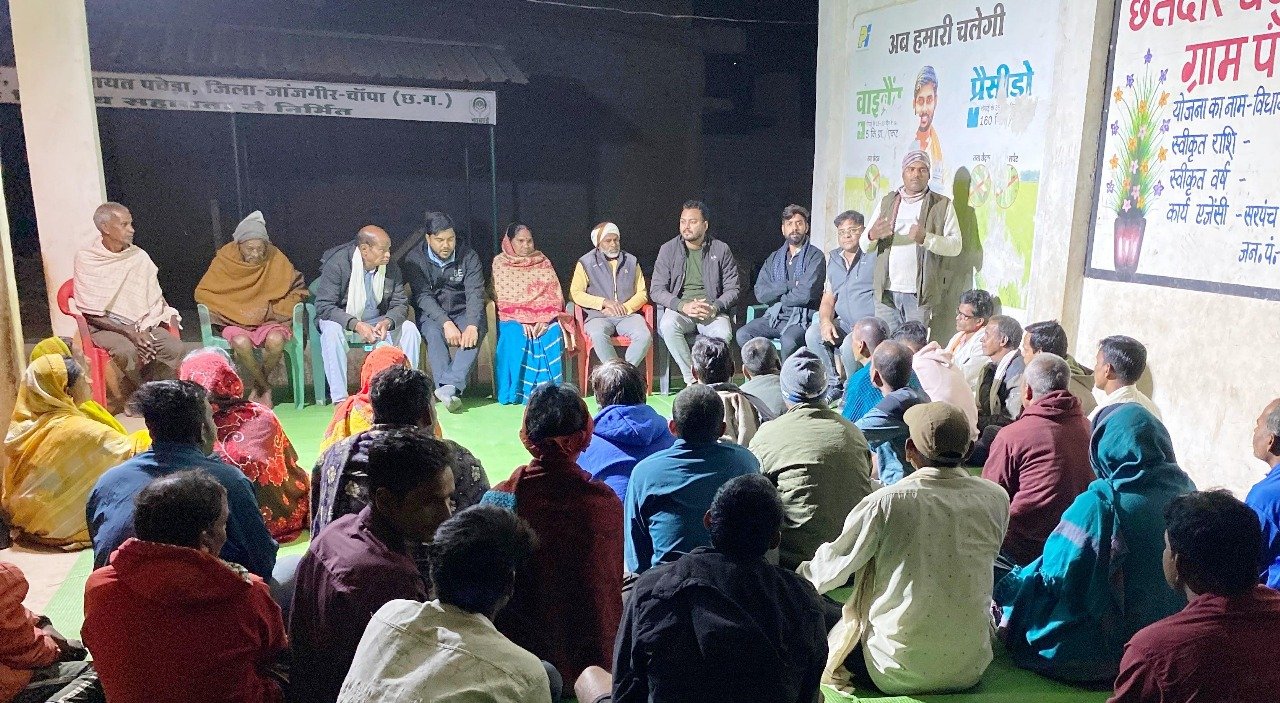 जांजगीर-चांपा 12 दिसम्बर 2025/ कलेक्टर श्री जन्मेजय महोबे के निर्देशन में तथा जिला पंचायत मुख्य कार्यपालन अधिकारी श्री गोकुल रावटे के मार्गदर्शन में जिले भर में जन चौपाल एवं रात्रि चौपाल का आयोजन लगातार किया जा रहा है। ग्राम पंचायत स्तर पर आयोजित इन चौपालों में ग्रामीणों, प्रधानमंत्री आवास हितग्राहियों, मनरेगा जॉब कार्ड धारकों, स्व सहायता समूह को योजनाओं की प्रगति एवं दिशा-निर्देशों की जानकारी दी जा रही है।