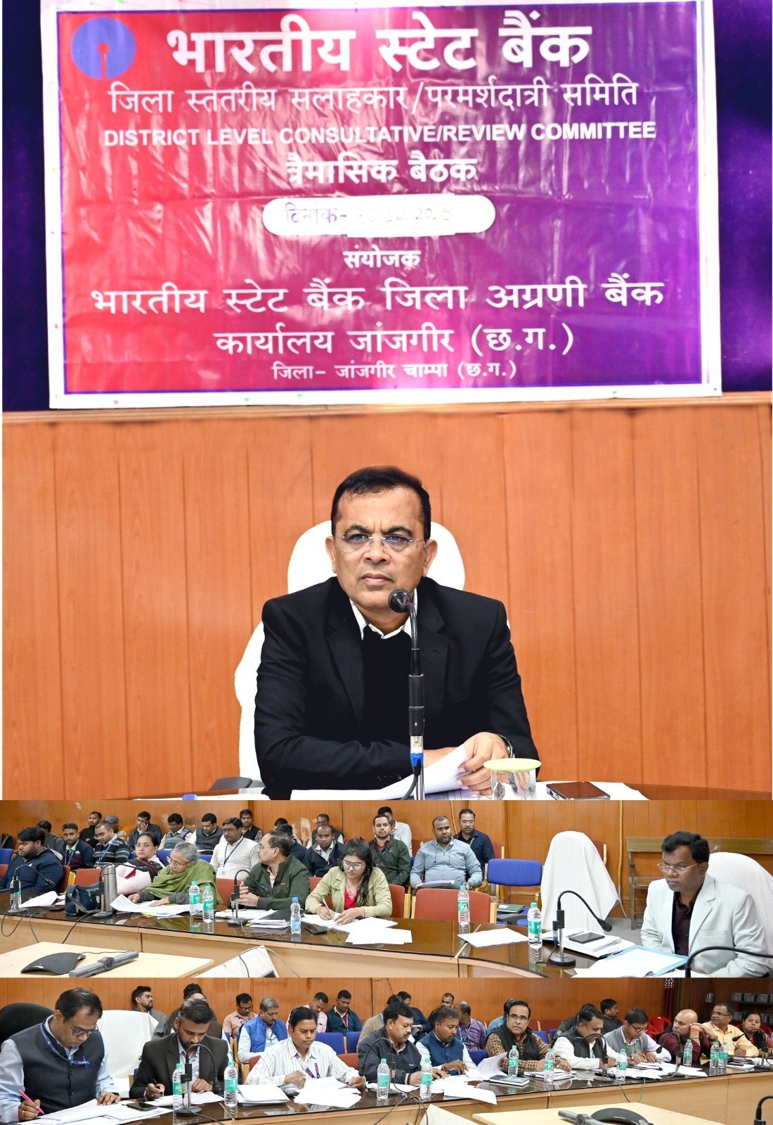 जांजगीर-चांपा 30 दिसम्बर 2025। कलेक्टर श्री जन्मेजय महोबे ने आज कलेक्टोरेट सभाकक्ष में जिला स्तरीय सलाहकार एवं परामर्शदात्री समिति की त्रैमासिक बैठक ली। बैठक में उन्होंने विभिन्न हितग्राहीमुखी विकास तथा रोजगारमूलक योजनाओं की प्रगति की समीक्षा की और अधिकारियों को इन योजनाओं के प्रकरणों में शत-प्रतिशत स्वीकृति और सहायता ऋण राशि के समयबद्ध वितरण के निर्देश दिए। इस अवसर पर जिला पंचायत मुख्य कार्यपालन अधिकारी श्री गोकुल रावटे, रिजर्व बैंक, लीड बैंक एवं अन्य बैंकों के अधिकारी उपस्थित थे।
