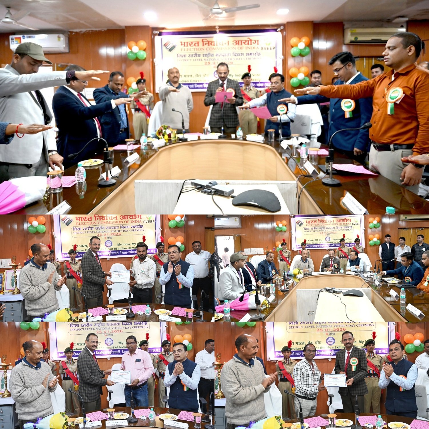 जांजगीर-चांपा 25 जनवरी 2026/ भारत निर्वाचन आयोग, नई दिल्ली के निर्देशानुसार 16वां राष्ट्रीय मतदाता दिवस कार्यक्रम आज कलेक्टोरेट सभाकक्ष में मेरा भारत, मेरा वोट की थीम पर आयोजन किया गया। कार्यक्रम में राष्ट्रीय मतदाता दिवस के इतिहास एवं महत्व की विस्तृत जानकारी दी।