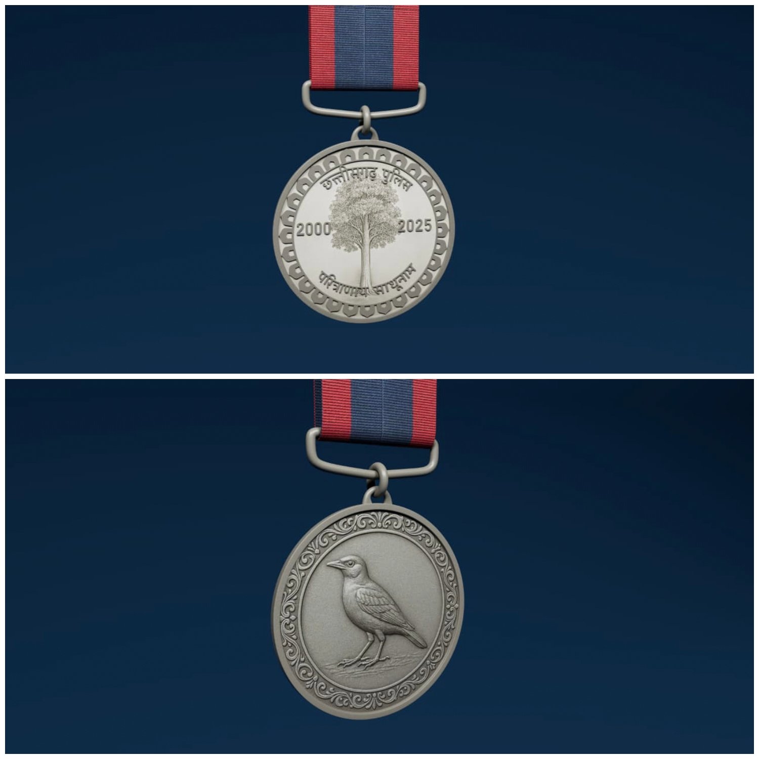 मुख्यमंत्री श्री साय ने कहा कि यह पदक छत्तीसगढ़ की माटी, संस्कृति और परंपरा की पहचान को आत्मसात करता है। पदक गोल आकार का एवं चांदी के रंग का होगा, जिसके अग्र भाग में साल वृक्ष तथा पीछे के भाग में पहाड़ी मैना का उभरा हुआ चित्र अंकित रहेगा और इसे रिबन के साथ धारण किया जाएगा। वर्दी के बाईं ओर जेब के ऊपर यह पदक अशोक चक्र, कीर्ति चक्र, वीरता पदक, राष्ट्रपति के विशिष्ट सेवा पदक तथा राष्ट्रपति के सराहनीय सेवा पदक के पश्चात वरीयता क्रम में लगाया जाएगा।