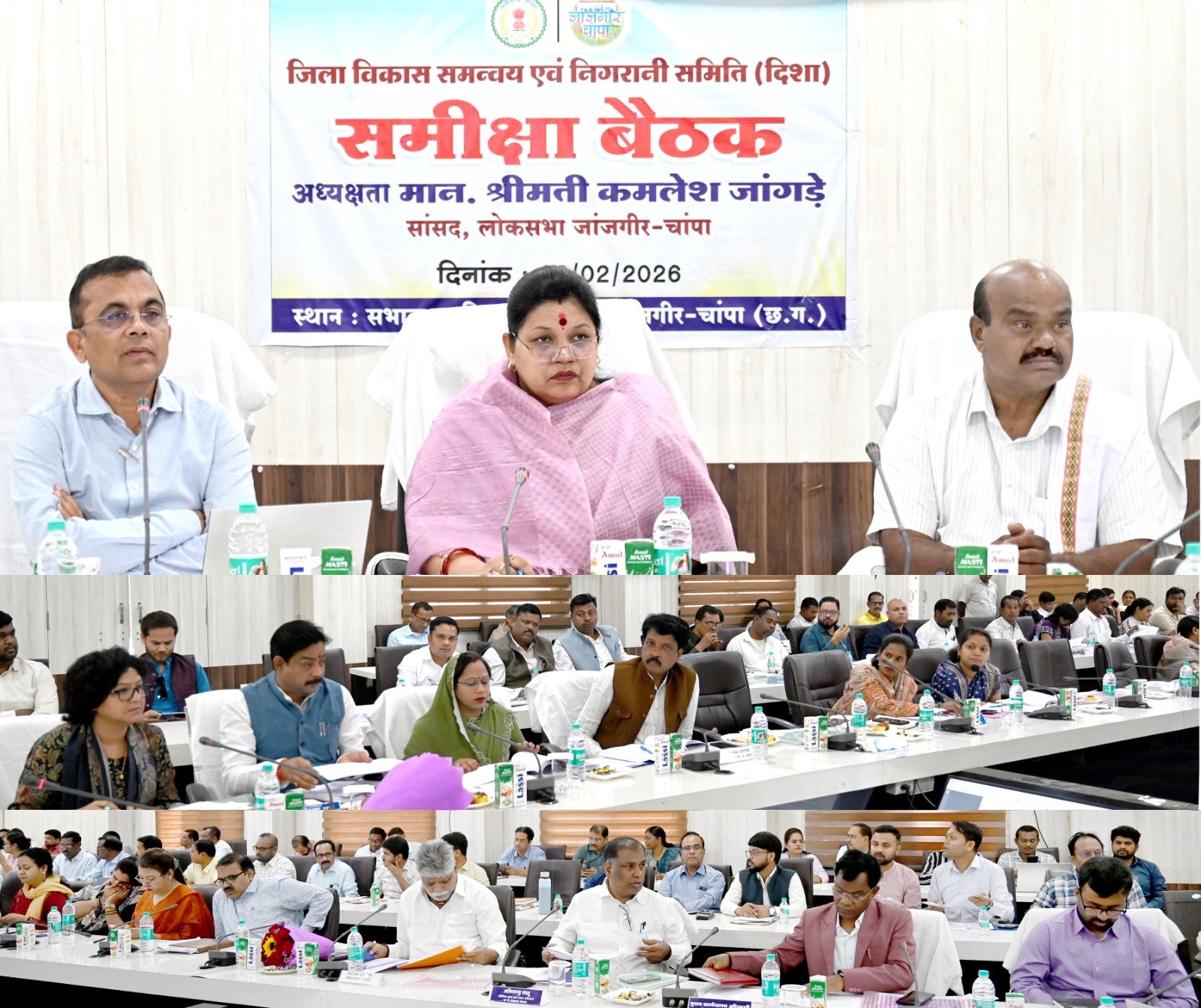 जांजगीर-चांपा, 16 फरवरी 2026/ लोकसभा क्षेत्र जांजगीर-चांपा की सांसद श्रीमती कमलेश जांगड़े की अध्यक्षता में जिला विकास समन्वय एवं निगरानी समिति (दिशा) की बैठक जिला पंचायत सभाकक्ष में आयोजित की गई। बैठक में केंद्र प्रवर्तित विभिन्न योजनाओं की प्रगति की विस्तृत समीक्षा करते हुए सांसद ने अधिकारियों को आवश्यक दिशा-निर्देश दिए। बैठक में विधायक जांजगीर-चांपा श्री ब्यास कश्यप, पामगढ़ विधायक श्री शेषराज हरवंश, जैजैपुर विधायक श्री बालेश्वर साहू, नगर पालिका परिषद अध्यक्ष श्रीमती रेखा देवा गढ़ेवाल, सर्व नगर पालिका, नगर पंचायत अध्यक्ष, जनपद पंचायत अध्यक्ष, श्री संजय रामचंद्र अग्रवाल, श्री गुलजार सिंह, श्री संदीप यादव, कलेक्टर श्री जन्मेजय महोबे, वनमंडलाधिकारी श्री हिमांशु डोंगरे, जिला पंचायत सीईओ श्री गोकुल रावटे सहित संबंधित विभागों के अधिकारी उपस्थित थे।