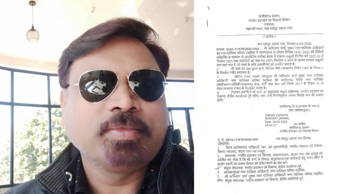 आदेश में स्पष्ट किया गया है कि यह आचरण छत्तीसगढ़ सिविल सेवा (आचरण) नियम, 1965 के नियम-3 के विपरीत है। इसी आधार पर छत्तीसगढ़ राज्य नगर पालिका (कार्यपालन/यांत्रिकी/स्वास्थ्य) सेवा भर्ती एवं सेवा शर्तें नियम, 2017 के नियम-33 के तहत अभिताभ शर्मा को निलंबित किया गया है।