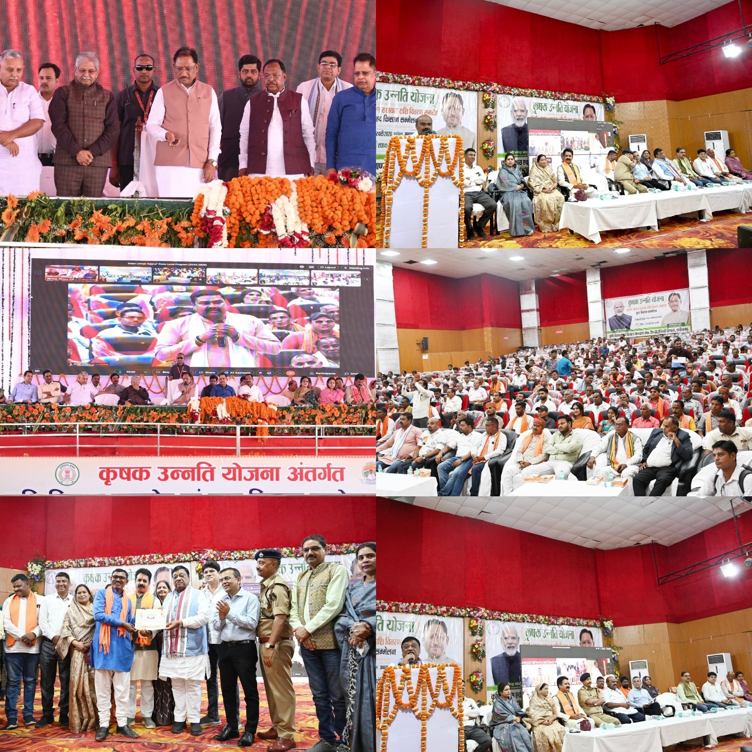 कृषक उन्नति योजना अंतर्गत जांजगीर-चांपा जिले के 1,18,927 किसानों के खातों में कुल 450 करोड़ 85 लाख 45 हजार 132 रुपये की राशि डीबीटी के माध्यम से सीधे अंतरित की गई। राशि सीधे बैंक खातों में पहुंचने से किसानों में उत्साह का माहौल है। यह आर्थिक सहायता किसानों को आगामी फसल की तैयारी, कृषि निवेश एवं घरेलू आवश्यकताओं की पूर्ति में सहायक होगी। इस अवसर पर जिला मुख्यालय स्थित ऑडिटोरियम भवन, जांजगीर में कार्यक्रम का आयोजन किया गया। कार्यक्रम में जांजगीर-चांपा विधायक श्री ब्यास कश्यप, पूर्व नेता प्रतिपक्ष श्री नारायण चंदेल, जिला पंचायत सदस्य श्री राजकुमार साहू, श्रीमती प्रियंका पुष्पेंद्र सिंह, जनपद पंचायत अध्यक्ष श्रीमती अर्चना देवांगन, नगर पालिका के उपाध्यक्ष श्री मोहन यादव, श्री पुष्पेंद्र सिंह, इंजी रवि पांडेय, श्रीमती नंदिनी राजवाड़े, श्री बिसुनलाल कश्यप, श्री विवेका गोपाल, श्री आशुतोष गोस्वामी, कलेक्टर श्री जन्मेजय महोबे, पुलिस अधीक्षक श्री विजय कुमार पांडेय सहित जनप्रतिनिधि, अधिकारी-कर्मचारी एवं बड़ी संख्या में किसानों की उपस्थिति रही। राज्य स्तरीय कार्यक्रम का सीधा प्रसारण भी किया गया, जिसे उपस्थित जनप्रतिनिधियों व किसानों ने देखा और मुख्यमंत्री का संबोधन सुना।