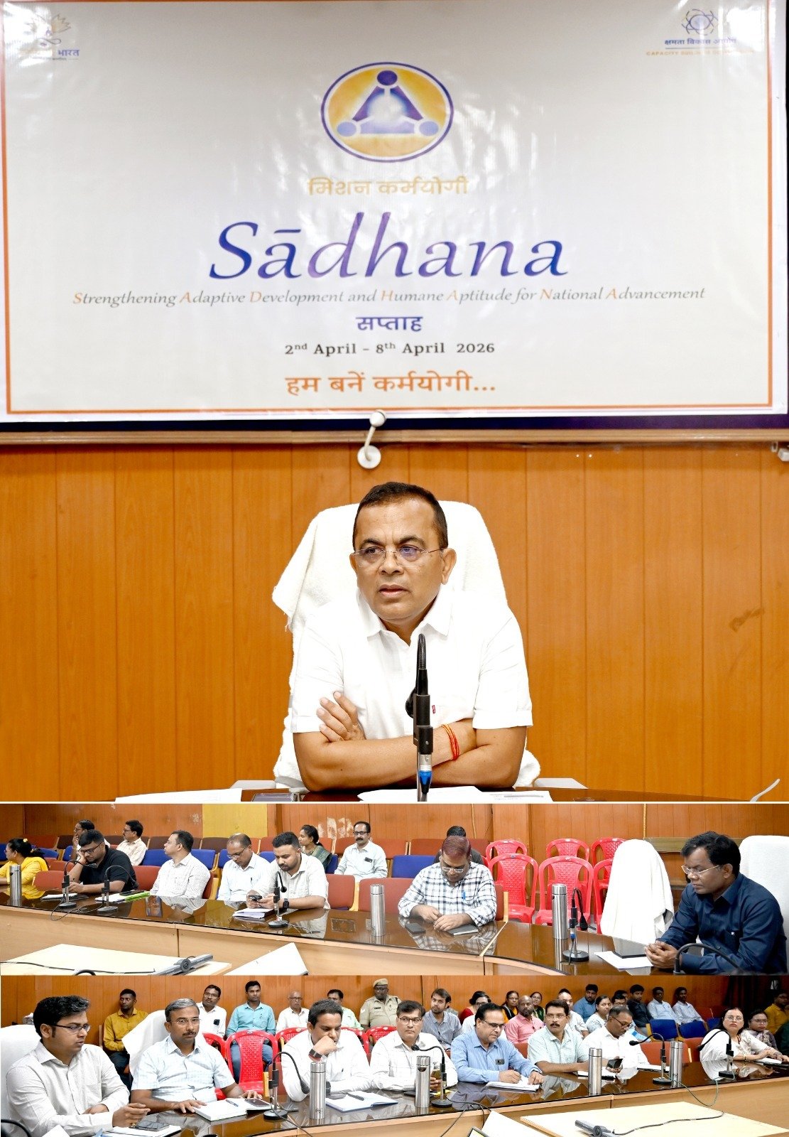 जांजगीर-चांपा, 02 अप्रैल 2026/ कलेक्टर श्री जन्मेजय महोबे की अध्यक्षता में आज जिला कलेक्टोरेट सभाकक्ष में मिशन कर्मयोगी के तहत “राष्ट्रीय अधिगम सप्ताह – साधना सप्ताह 2026” के सफल आयोजन को लेकर महत्वपूर्ण बैठक एवं प्रशिक्षण आयोजित की गई। कलेक्टर ने कहा कि कर्मयोगी भारत अभियान के अंतर्गत जिले में 2 अप्रैल से 08 अप्रैल 2026 तक साधना सप्ताह मनाया जाएगा। इस अभियान का मुख्य उद्देश्य शासन के अधिकारियों एवं कर्मचारियों को आधुनिक प्रशासनिक दक्षताओं, डिजिटल गवर्नेंस, व्यवहारिक प्रशासनिक कौशल एवं भूमिका आधारित प्रशिक्षण से सशक्त बनाना है, जिससे शासन की कार्यप्रणाली अधिक परिणामोन्मुखी एवं नागरिक हितैषी बन सके।