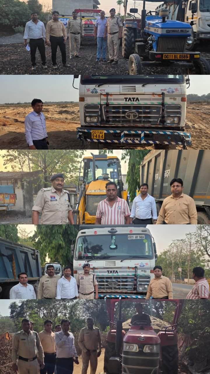 अवैध खनिज गतिविधियों पर कार्रवाई, 01 हाइवा,1 जेसीबी मशीन,02 ट्रैक्टर जब्त