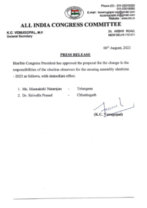 बदली गईं छत्तीसगढ़ की चुनाव पर्यवेक्षक, मीनाक्षी नटराजन की जगह इन्हें मिली जिम्मेदारी