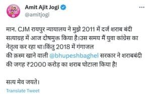 शराबबंदी सत्याग्रह मामले में कोर्ट ने अमित जोगी को किया दोषमुक्त, ट्वीट कर दी जानकारी…