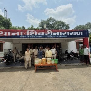 जांजगीर चांपा :- थाना शिवरीनारायण एवं मुलमुला क्षेत्र के ग्रामों में अवैध रूप से शराब बिक्री किया जाता है कि सूचना पर रेड कार्यवाही किया गया पाया गया कि *थाना शिवरीनारायण क्षेत्र के ग्राम तनौद में आरोपी रामसिंह सूर्यवंशी के कब्जे से 50 लीटर, ग्राम कुकदा निवासी आरोपी संजय कुमार टंडन के कब्जे से 250 लीटर थाना मुलमुला क्षेत्र सबरिया डेरा के आरोपी राजेश कुमार के कब्जे से 60 लीटर, ग्राम तागा निवासी इंदल प्रसाद यादव के कब्जे से 10 लीटर इस प्रकार जुमला कच्ची महुआ शराब 370 लीटर बरामद किया गया है।