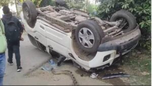डिवाइडर से टकराकर स्कॉर्पियो पलटी, ड्राइवर समेत सवार लोगों का हुआ ये हाल