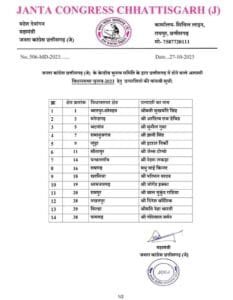 जोगी कांग्रेस ने जारी की 27 प्रत्याशियों की सूची, पामगढ़ से कांग्रेस के पूर्व प्रत्याशी गोरेलाल बर्मन को मिला टिकट, देखें लिस्ट