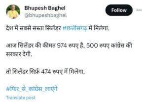 CM भूपेश बघेल ने ट्वीट कर कहा – छत्तीसगढ़ में 500 रुपए से भी कम में मिलेगा सिलेंडर