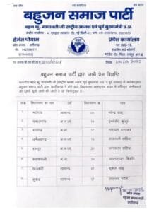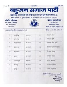 बहुजन समाज पार्टी ने प्रत्याशियों की दूसरी लिस्ट की जारी, इन 17 उम्मीदवारों पर पार्टी ने जताया भरोसा